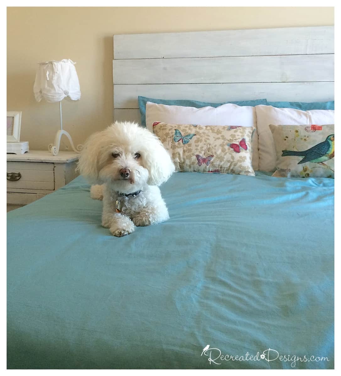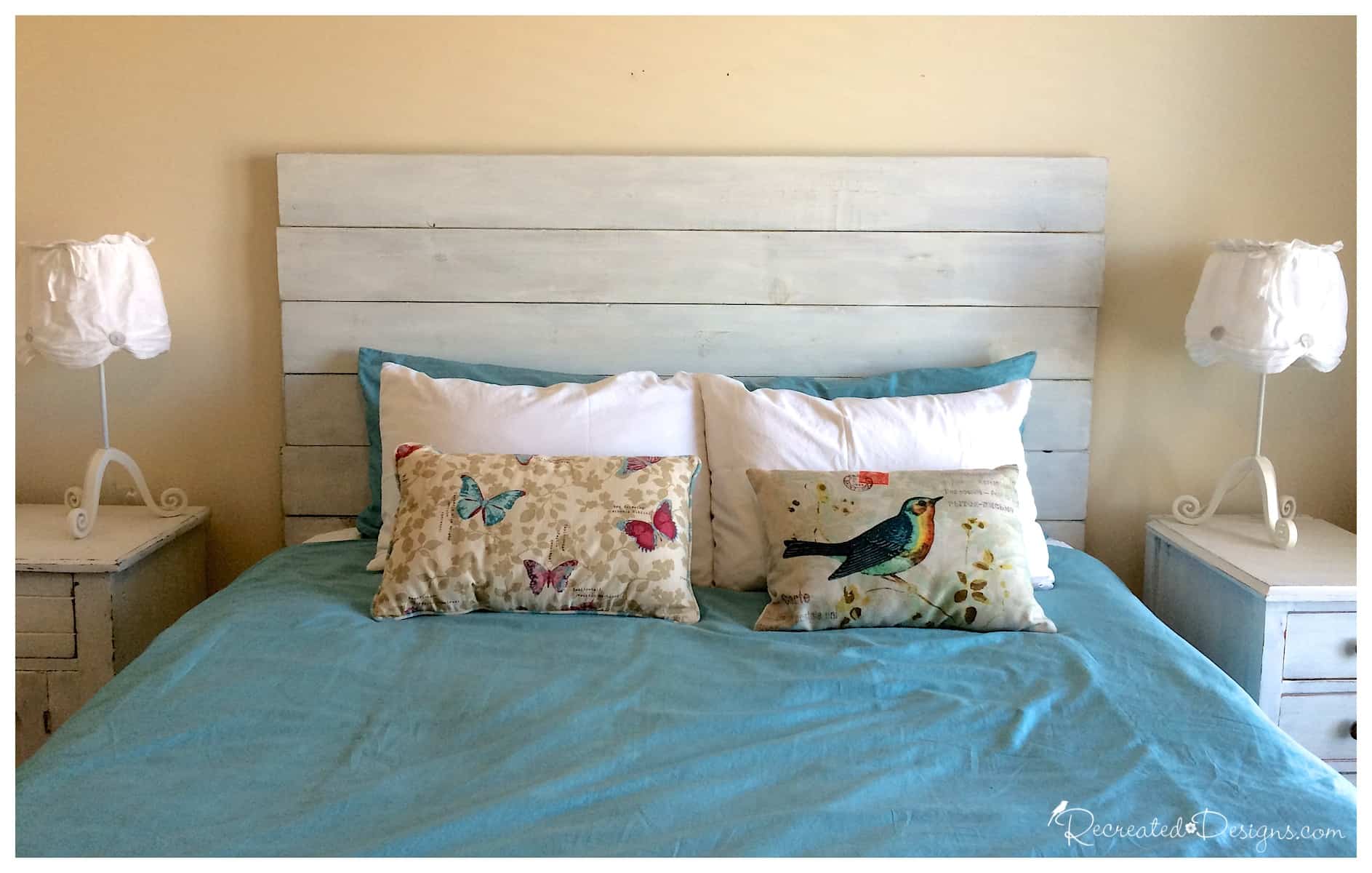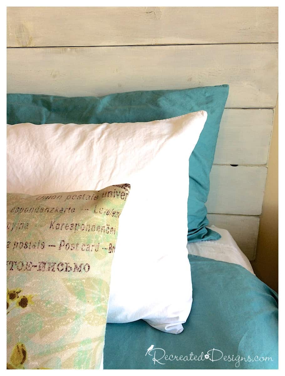 It is amazing how easily a little bit of wood can be transformed to look like it has been around for 100 years. You now have a beautiful headboard that can be left as is or decorated and changed up with the seasons.