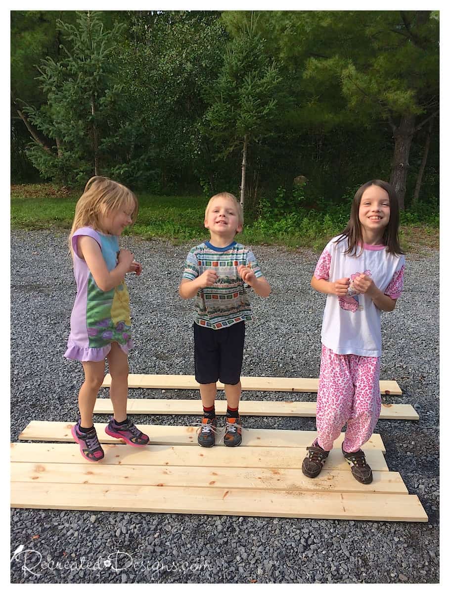The boards don’t need to match up evenly or perfectly — having them a little bit off will help with the rustic feel.