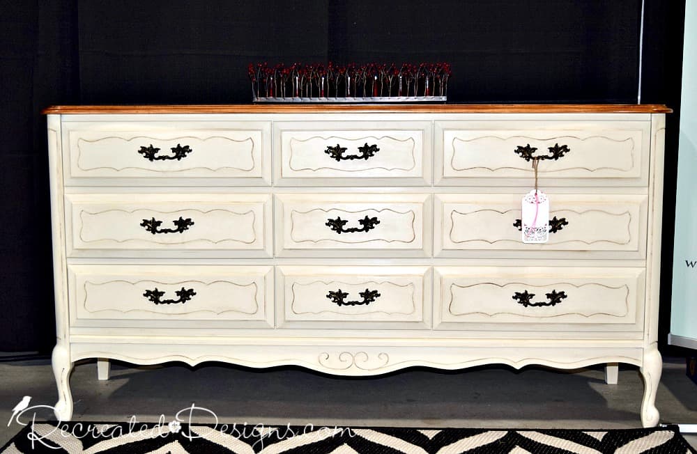 As I watched people mull about and look at various pieces of furniture, I realized that many did not know what to look for when purchasing a quality piece of painted furniture. a beautiful dresser painted creamRefreshed furniture can be so beautiful and unique.  Each piece is one-of-a-kind and painted with vision and creativity.  It can be difficult to know what is quality… and what is not though.