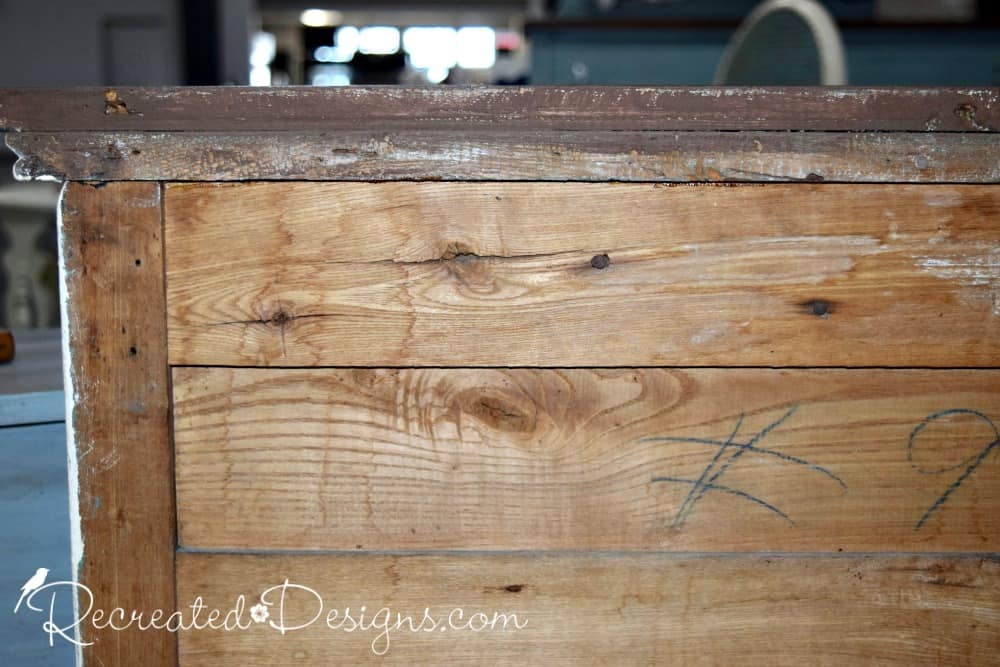 the painted back of a vintage wood dresserthe inside of a painted drawerPainted backs and drawers – usually these show that the painter has gone the extra mile to do an exceptional job