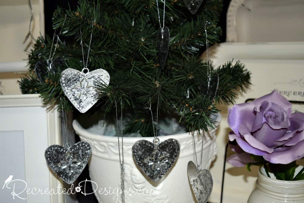 Keep these tips in mind the next time you are buying painted furniture.  If you pay attention to the details of a piece and how they were finished, you will end up with a quality piece that should last you for years to come.  small potted tree with tin hearts hanging from itAnd, in the end, you have to love the piece of furniture you choose.  If a piece speaks to you… get it!