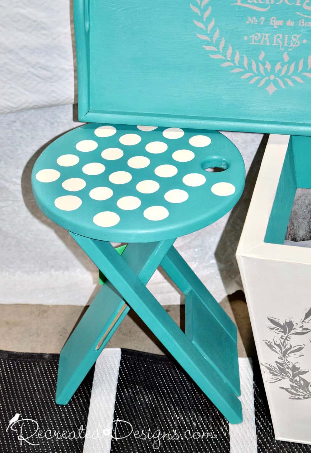 You don’t want to regret missing out on that perfect piece.turquoise painted stool with white polka dotsA big thanks to AKB Creations, Paint-Er Up and Karla’s Creations for letting me photograph their gorgeous pieces. (ps – the “take a peak” picture is not theirs!)