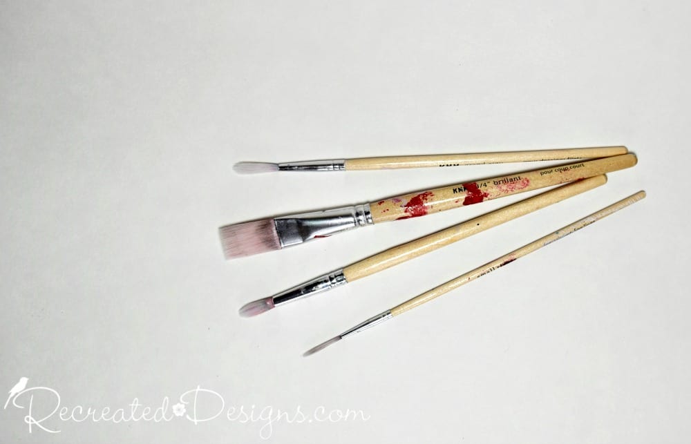Round – [easyazon_link identifier=”B0195ZU730″ locale=”US” tag=”recredesig20-20″]Round brushes[/easyazon_link] are excellent at holding a lot of paint and have a softer more subtle stoke to them. (They are my personal favourite!)