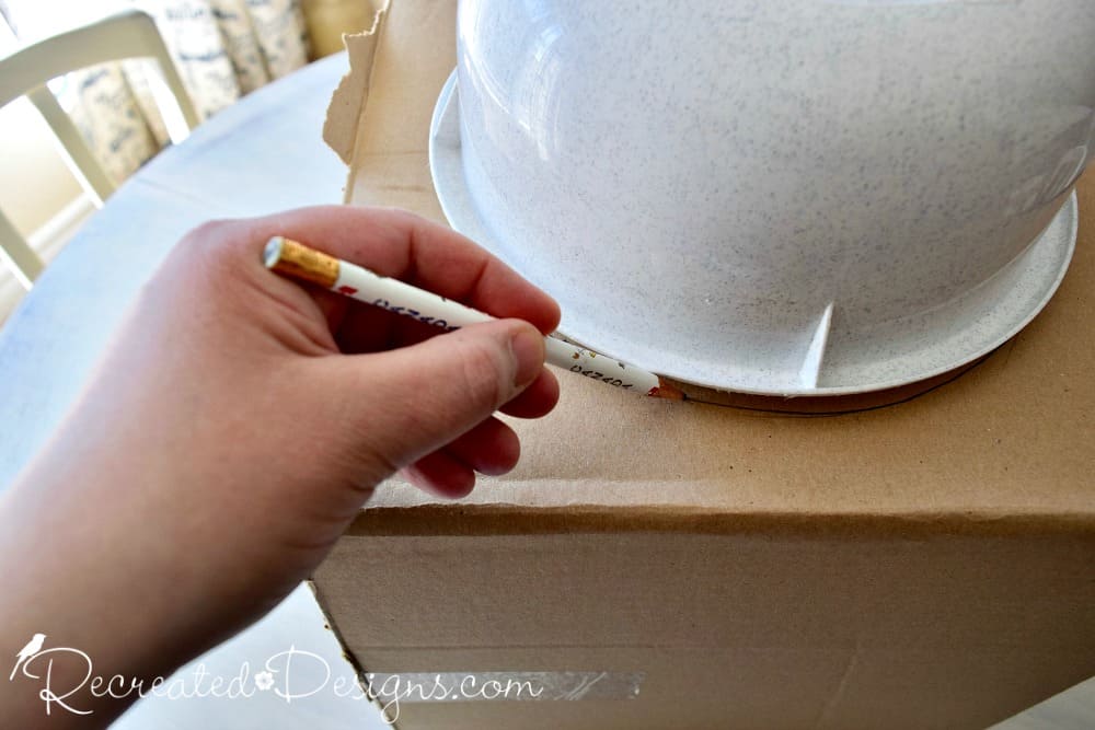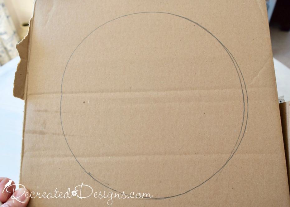 Here is how you can make your own book page flower… Grab a cardboard box. You will need this to make the backing to build the flower on. Draw a large circle on one side. I used a large Tupperware bowl so I would get a nice even circle.Cut out the circle. I didn’t paint the circle for my flower because it is very full however, if you are worried about seeing the back, you can paint it an off-white colour to match the book pages.