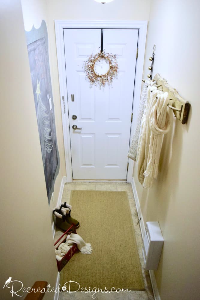 My house has a very little entryway that is pretty much the bain of my existence π It is small, cramped and has zero storage. Not to mention, that you walk in the door and immediately have to head up a very tall set of stairs.