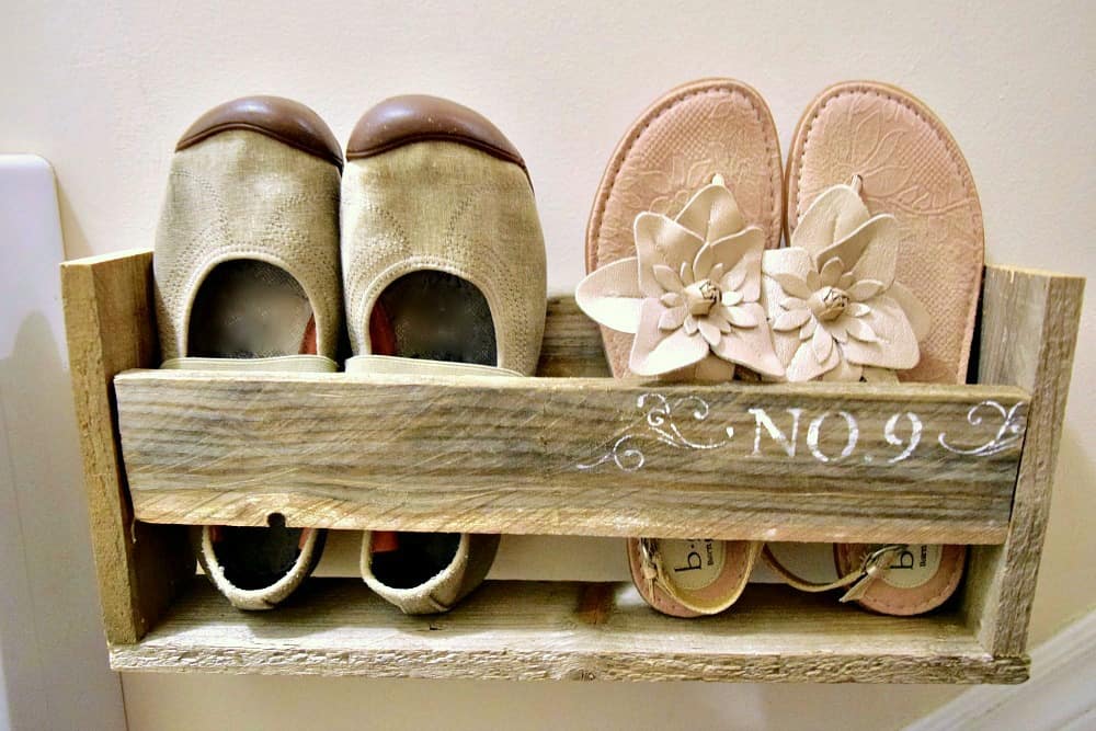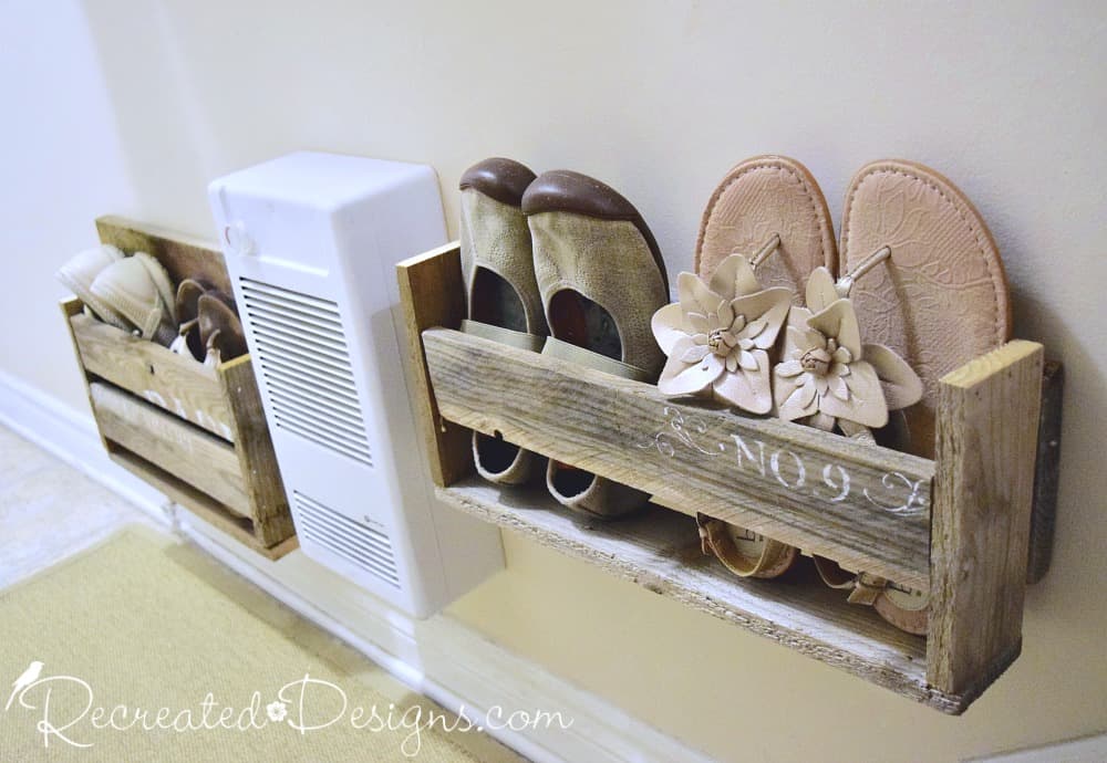 When our challenge for this month involved pallet wood, I wanted to build myself some wooden shoe racks to see if I could maximize the space on the right around the radiator.