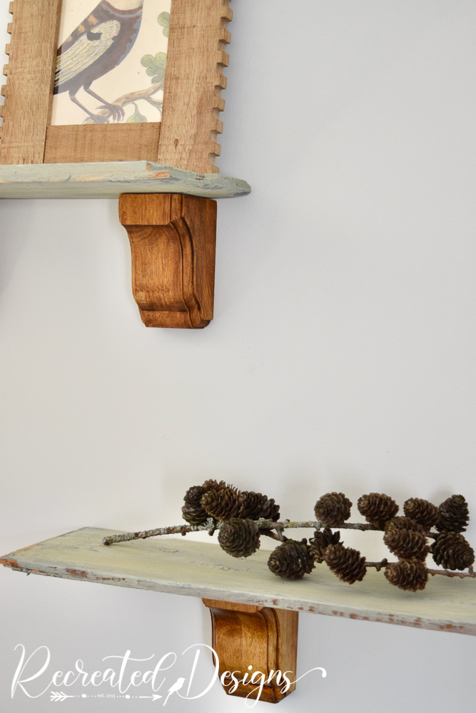 The final coat of paint was the same colour as the shelves I added a few weeks ago. I fell in love with the colour (Vintage Laurel) and wanted to use it somewhere else and this was the perfect spot.