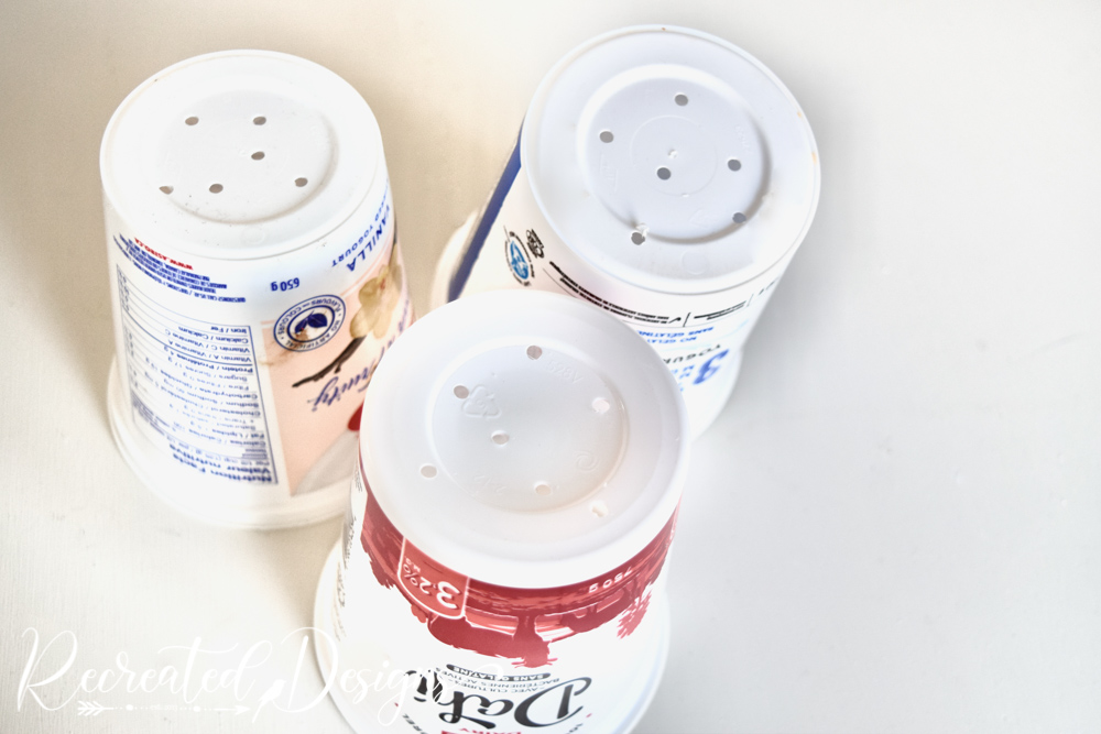 holes added to yogurt containers