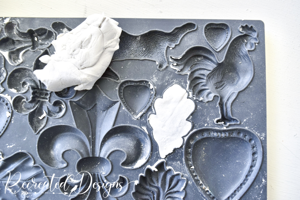 I have been wanting to use this IOD Fleur-de-Lis mould for a fall project since I saw it because I loved those little acorns and leaves tucked amongst the rest.